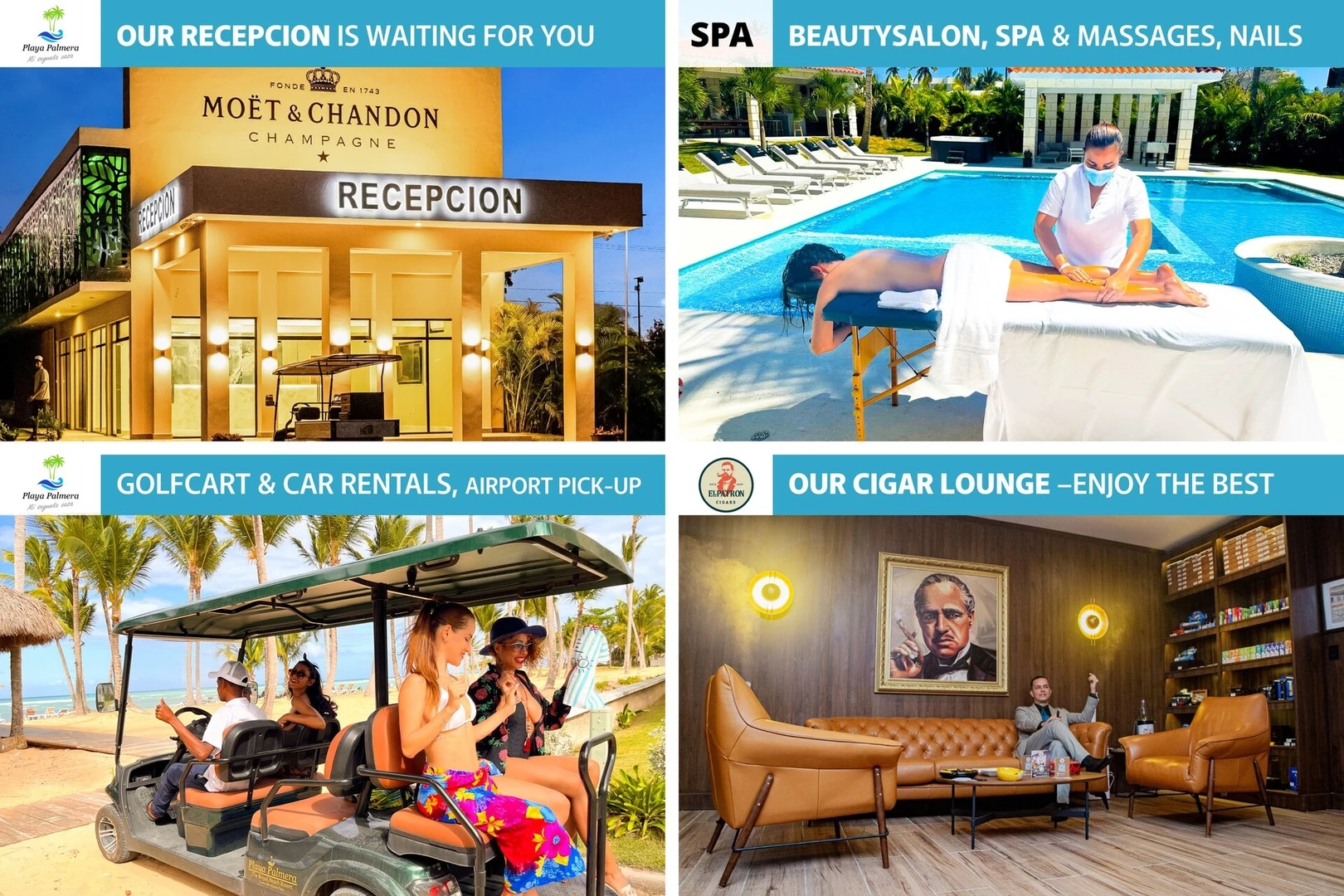 Luxurious and modern villas for comfort and privacy. A private pool is available for guests' use. Located just steps away from Playa Palmera's private beach.